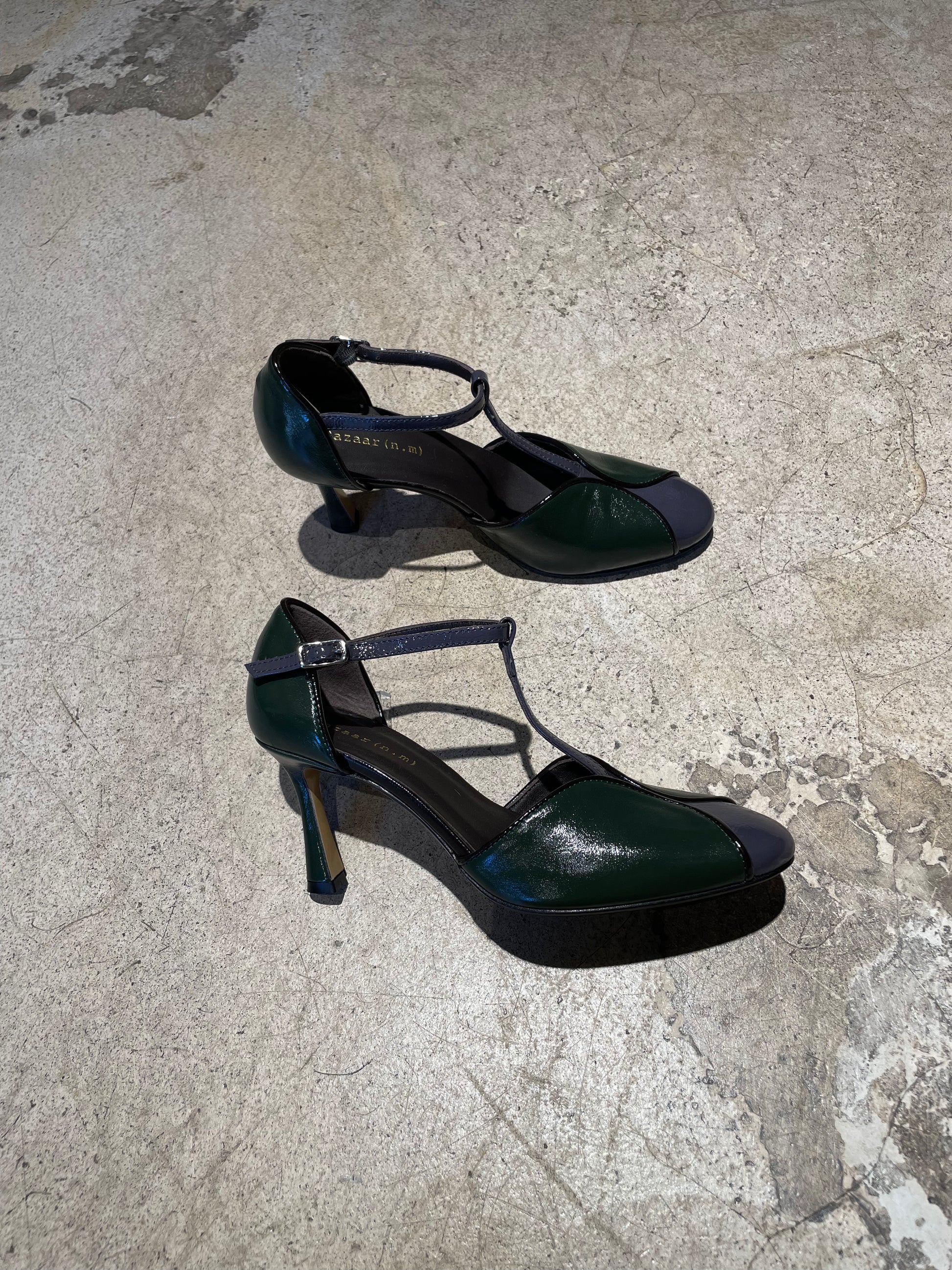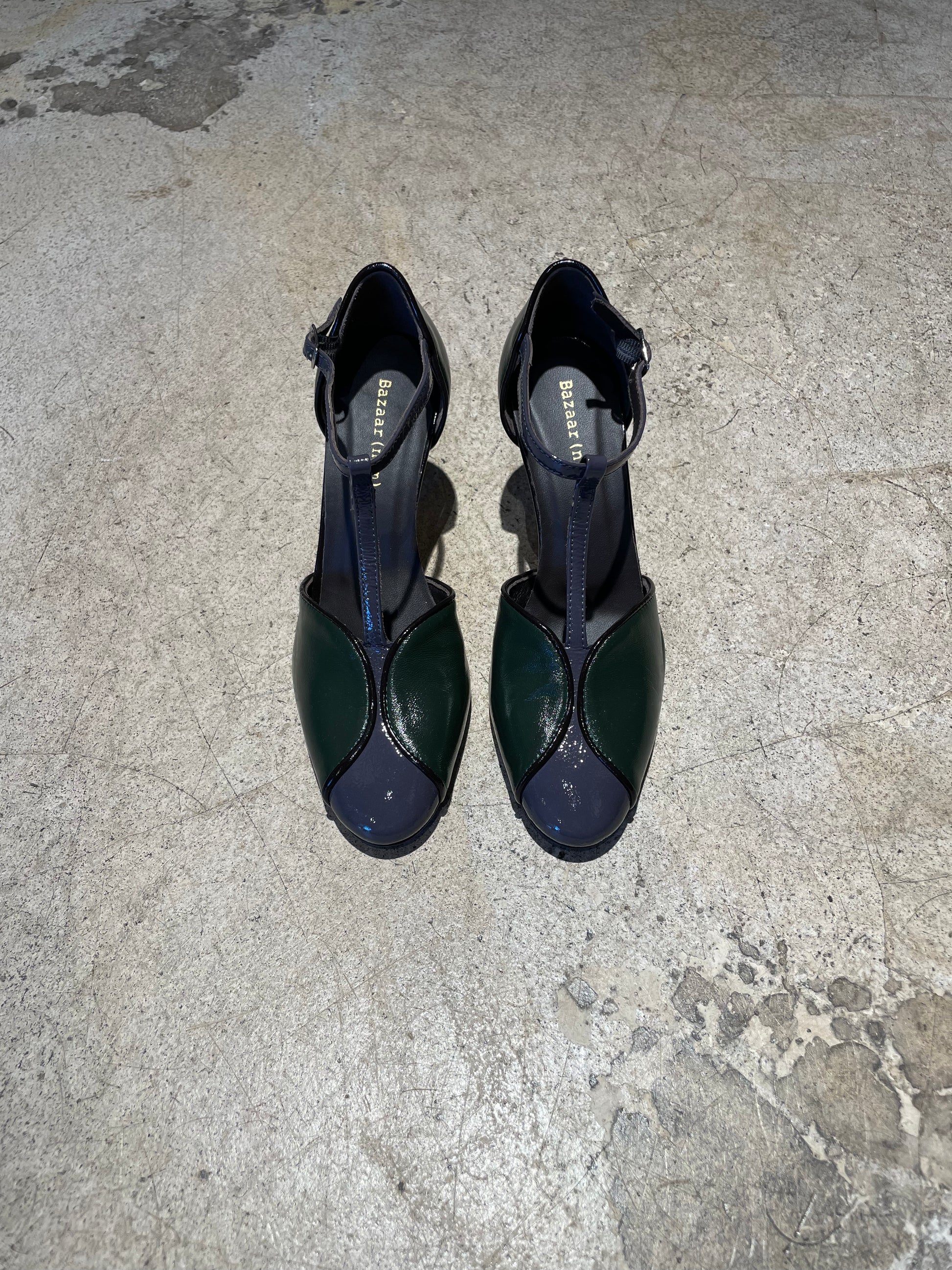 Salomés vernis bicolore gris, kaki et café, semelles interieurs à mémoire de forme.