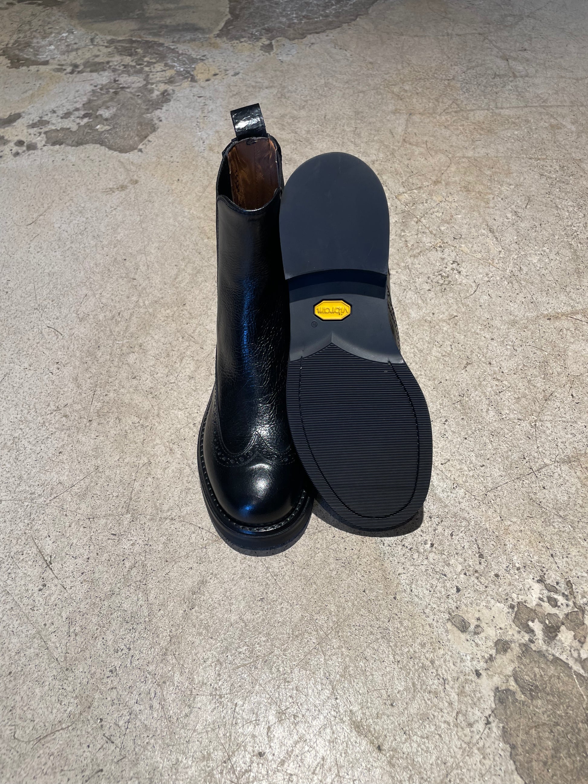 Bottines chelsea noire à bout fleuri, semelles Vibram.
